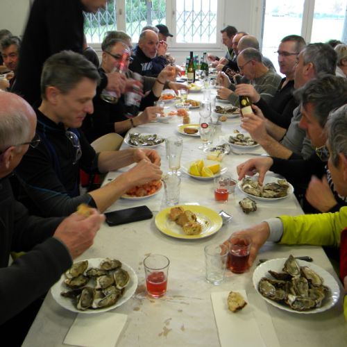 C'est une tradition au club: Afin de bien commencer cette nouvelle année, après la sortie dominicale, Cyclos et autres adhérents se sont rassemblés pour déguster huîtres ou crevettes dans une ambiance très festive.