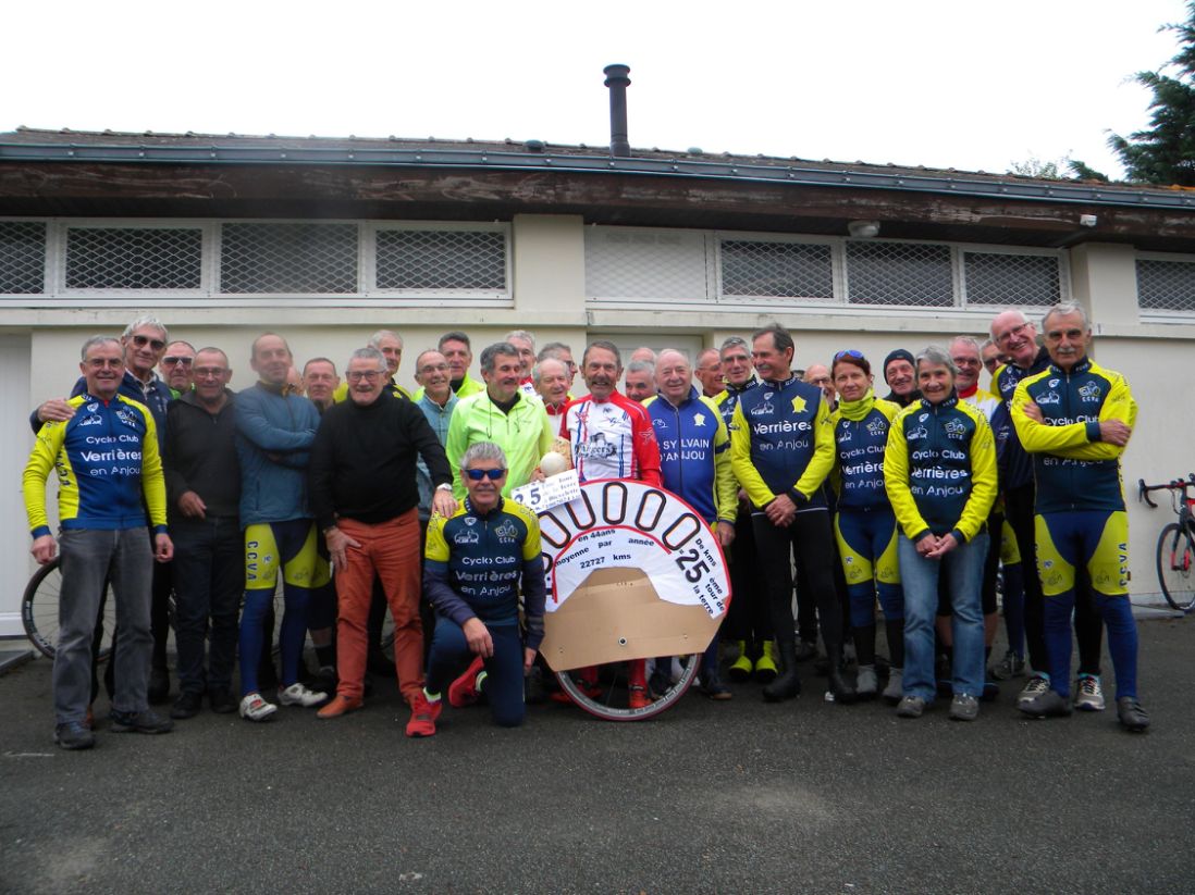 Si le temps fut plutot brumeux sur le parcours, l'ambiance du repas qui s'ensuivit fut elle, beaucoup plus chaleureuse: une quarantaine de cyclistes se retrouvèrent pour fêter comme il se doit le millionième kilomètre de notre légende: Mr Lionel Delahaye.